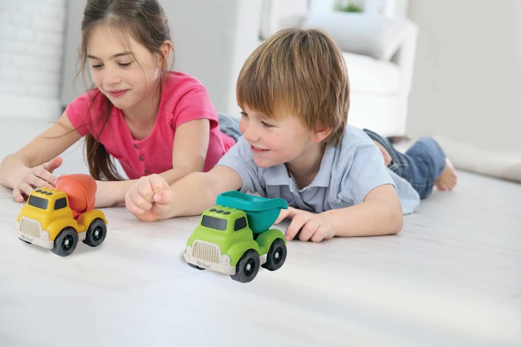 Vozila su izrađena od bioplastike na bazi pšeničnih vlakana, što je ekološka alternativa tradicionalnim plastikama. Prirodno oblikovano pakiranje s oznakom BIO TRUCK naglašava održivi karakter proizvoda. Idealno za samostalnu igru kod kuće i zajedničko druženje s roditeljima ili prijateljima.