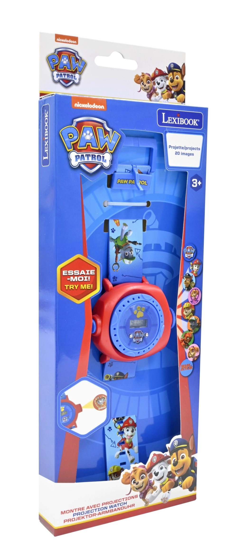 Integrirani projektor projicira do 20 šarenih motiva iz TLAPKOVE PATROLE – jednostavno pokretanje i trenutačna zabava na svakoj glatkoj površini.