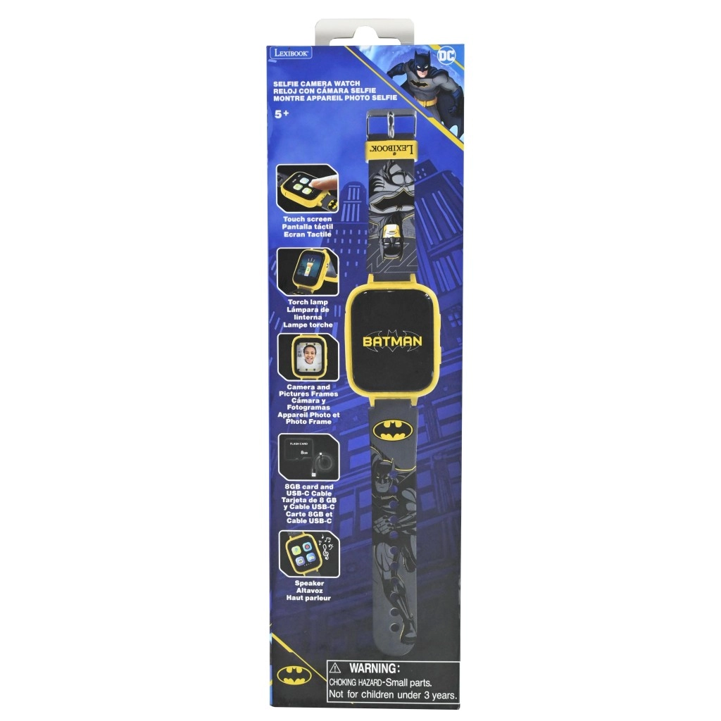 Dio pakiranja je 8GB SD kartica za pohranu snimaka i USB‑C kabel za brzo punjenje i prijenos podataka. Integrirani zvučnik i praktična baterijska svjetiljka proširuju mogućnosti upotrebe i kod kuće i na otvorenom. Elastičan remen s BATMAN grafikom, žuti okvir i praktično kopčanje osiguravaju udobno nošenje tijekom cijelog dana.