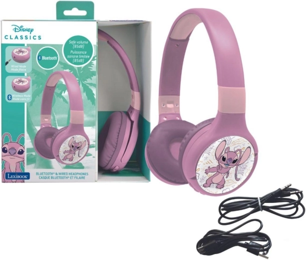 Dječje bežične slušalice Lexibook s motivom STITCH ANGEL spajaju razigran dizajn i sigurno slušanje. Nude udobno nošenje zahvaljujući mekoj podstavi, podesivom obruču i zatvorenoj konstrukciji za bolju izolaciju buke iz okoline. Zahvaljujući sklopivom dizajnu lako stanu u ruksak i odlične su za putovanja.