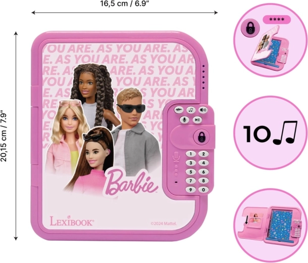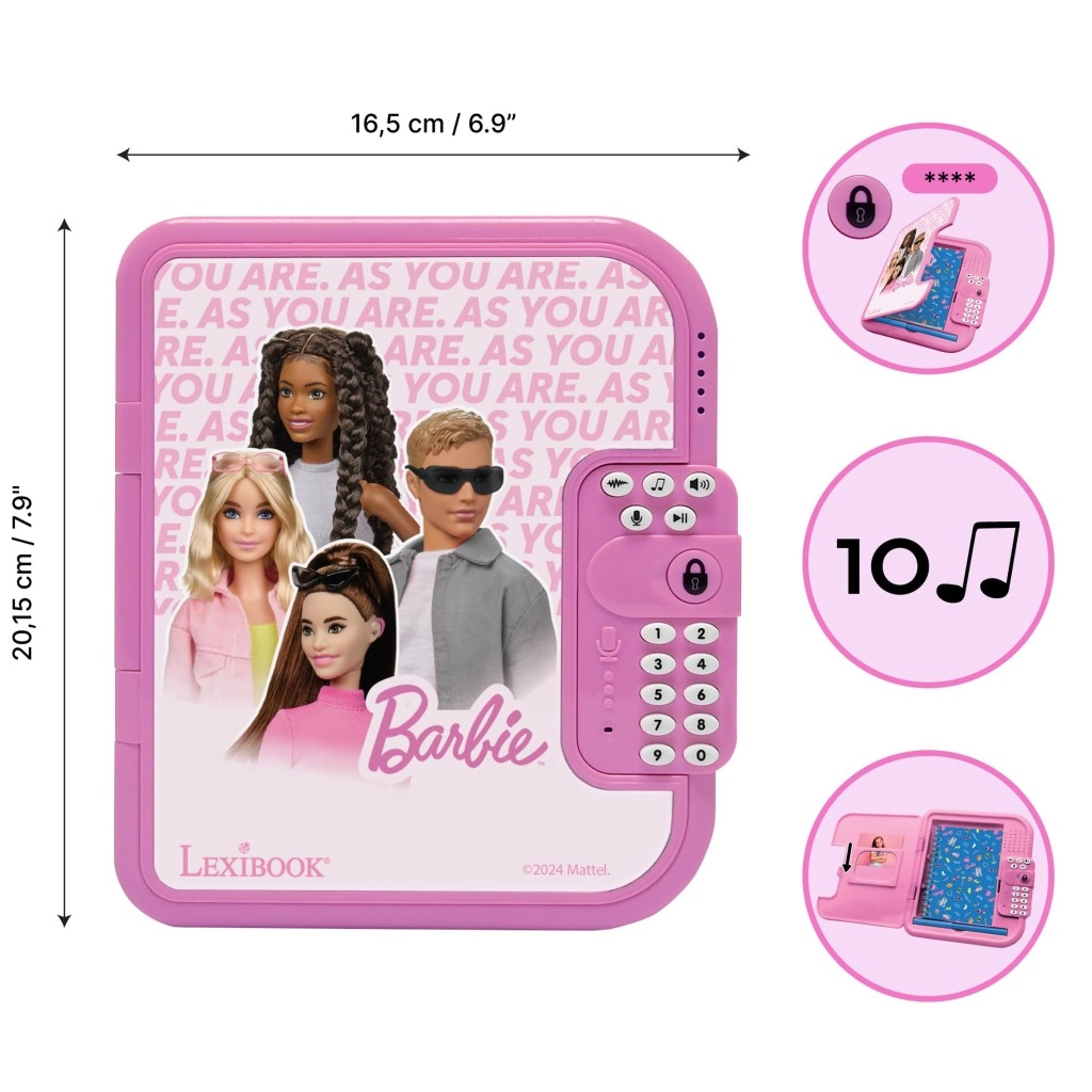 Elektronički tajni dnevnik BARBIE spaja klasično pisanje s pametnim funkcijama. Djeca postavljaju vlastiti 4-znamenkasti kod za zaključavanje sadržaja, dodaju glasovne poruke i ukrašavaju svoje zapise zvučnim efektima. Ružičasto izdanje s omiljenim likovima BARBIE potiče radost pisanja i svakodnevno stvaranje.