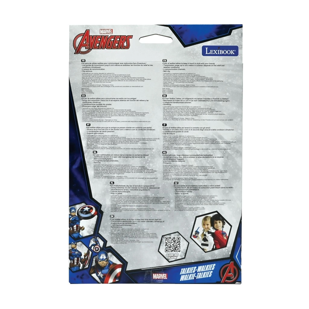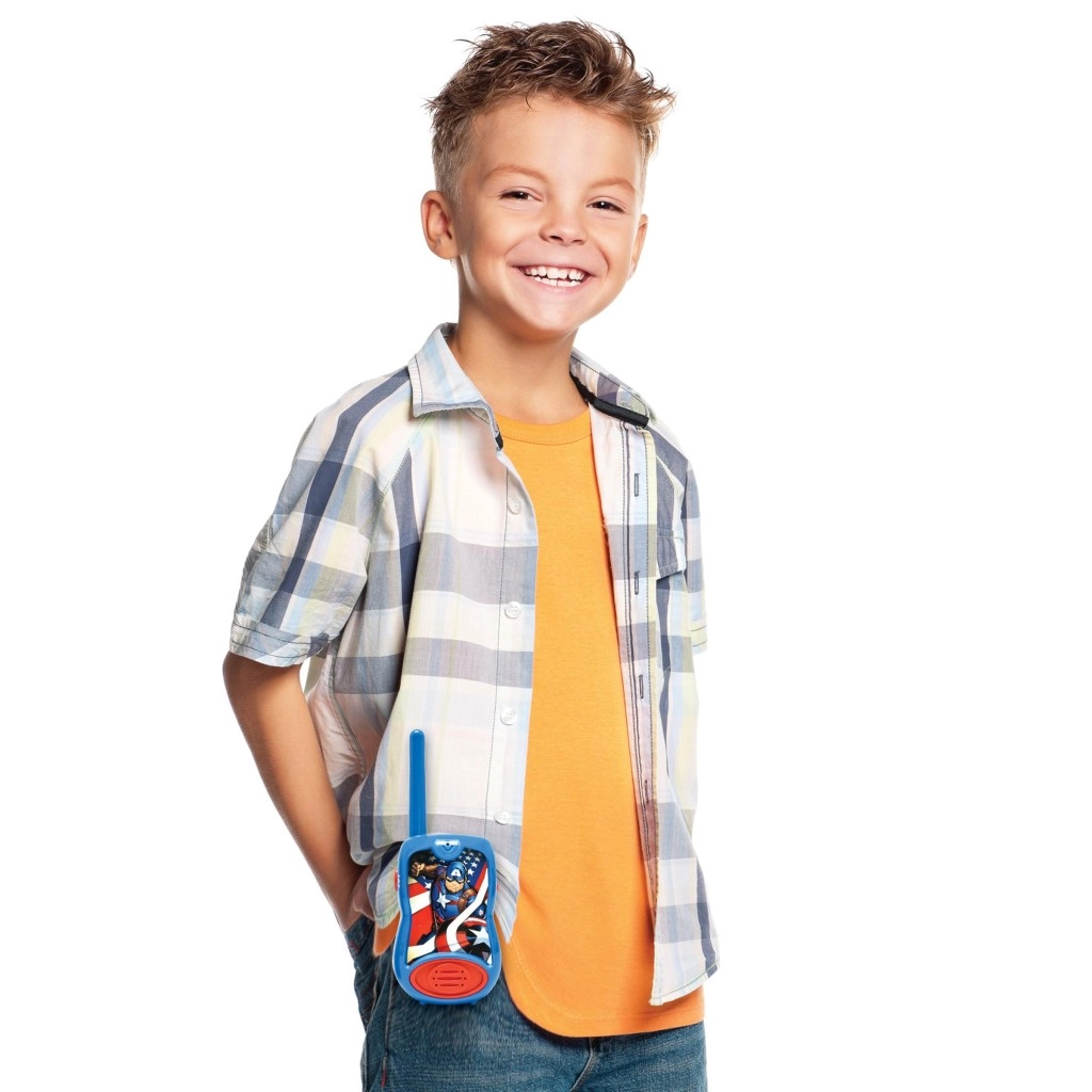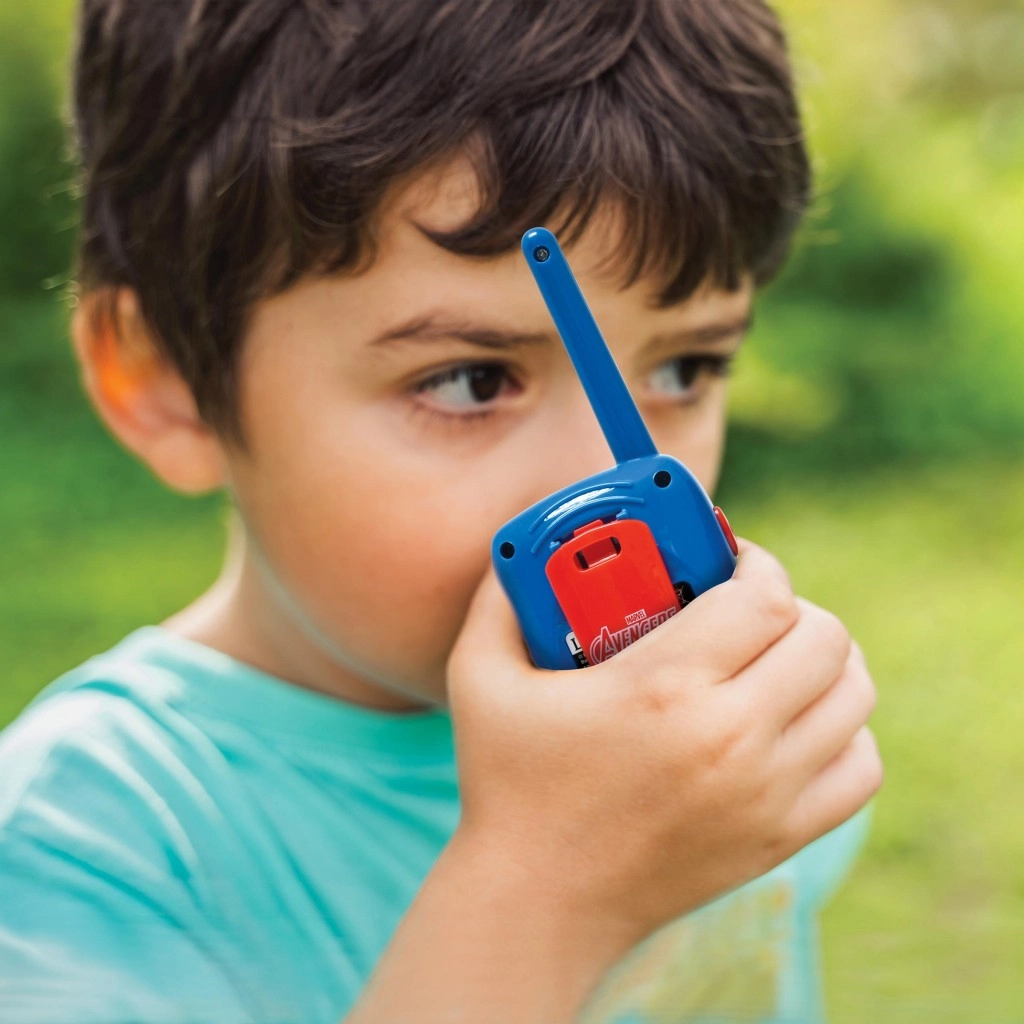 Otkrijte radost pustolovine s dječjim walkie‑talkijima s motivom MARVEL AVENGERS. Zahvaljujući dometu do 200 metara, djeca ostaju povezana na igralištu, u vrtu i kod kuće. Jednostavno upravljanje bočnom tipkom potiče interaktivnu igru i suradnju.