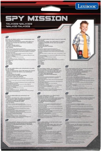 Walkie-talkie uređaji Lexibook SPY MISSION ističu se crnim dizajnom s crvenim detaljima i dugom antenom za stabilnu komunikaciju. Djeca lako pritisnu tipku za prijenos, a zahvaljujući jasnom prijenosu glasa bez poteškoća se dogovaraju o svojim misijama u parku, na igralištu i kod kuće.