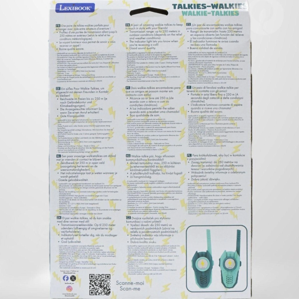 Otkrijte svijet komunikacije s dječjim voki-tokijima LEXIBOOK. Lagana konstrukcija, udobno držanje i pregledne kontrole omogućuju i mlađoj djeci razgovor s prijateljima ili braćom i sestrama na udaljenosti do 250 metara u povoljnim uvjetima. Izdržljiva plastika podnosi svakodnevnu igru, a jasno označene funkcije olakšavaju korištenje.
