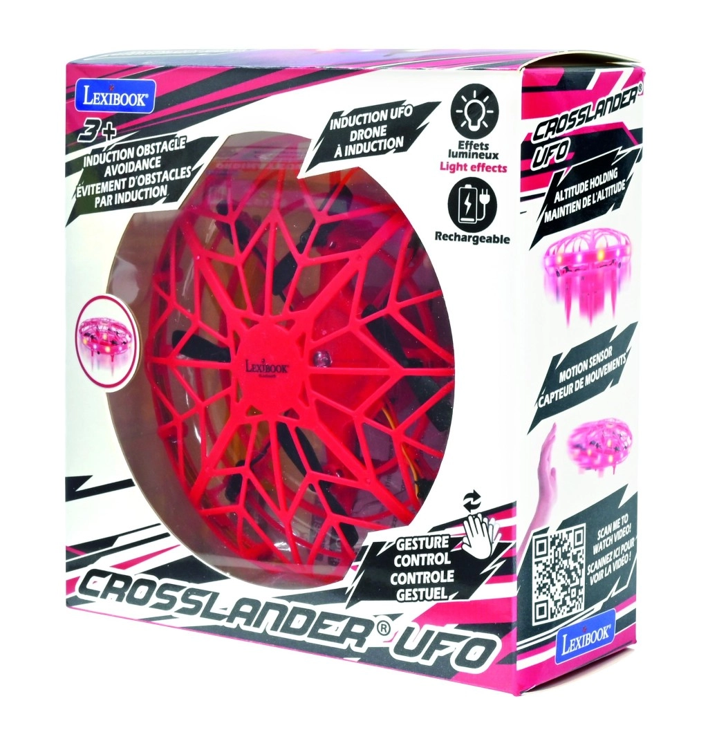 Otkrijte lako i intuitivno letenje s mini dronom LEXIBOOK Crosslander UFO. Upravljanje se odvija jednostavnim pokretima ruku bez daljinskog upravljača, što ga čini idealnim za najmlađe pilote. Zaštitna mrežasta kavez u crvenoj boji štiti propelere i dječje prstiće te osigurava sigurnu igru kod kuće.