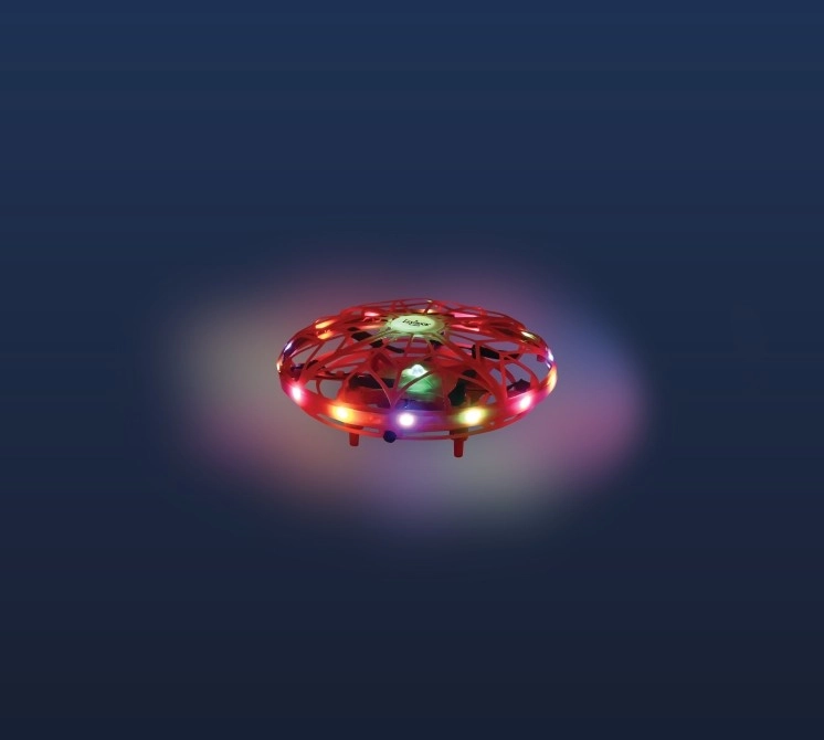 Zahvaljujući senzorima pokreta dron stabilno lebdi i inteligentno izbjegava prepreke. LED diode po obodu stvaraju višebojne svjetlosne efekte koji ističu svaki manevar i pri slabom svjetlu. Punjiva baterija 3,7 V i priloženi USB kabel olakšavaju redovitu upotrebu bez zamjene baterija.