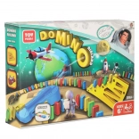Sadržaj pakiranja: 126× domino pločica (4 boje), 2× avion s izbacivačem, dijelovi staza, 2× kuglica, 1× figurica, 12× postolje za domino, 52× obrazovne naljepnice (slova, brojevi, matematički znakovi).