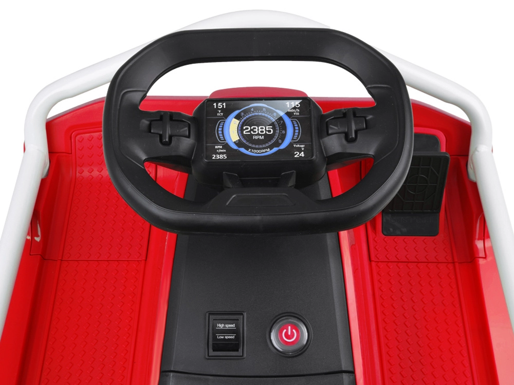 Više snage, više kontrole, više osmijeha. Srce gokarta je snažan bezčetkasti motor 24V/300 W koji omogućuje glatko ubrzanje do 14 km/h. Nožno upravljanje gasom i prekidač sporo/brzo daju djeci sigurnost pri učenju i dovoljno adrenalina kad steknu iskustvo.