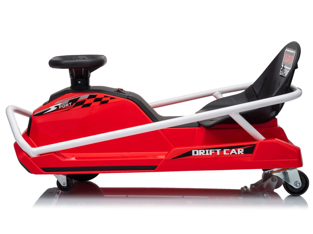Električni drift gokart 24V djeci donosi kontrolu, snagu i pravu vozačku zabavu. Zahvaljujući bezčetkastom motoru 300 W, brzini do 14 km/h i konstrukciji s pet kotača idealan je za kontrolirane proklize i glatko skretanje. Robustan metalni okvir, sigurnosni pojas i dva načina vožnje osiguravaju sigurnu i uzbudljivu vožnju.