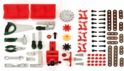 Dio seta je bogat komplet kvalitetnih dodataka: ravni i križni odvijač, ključ, libela, kliješta i turpija, zatim čekić, pila, kutnik, vijci, matice i konstruktivne letvice. Djeca kroz igru vježbaju finu motoriku, koordinaciju i logičko razmišljanje pri povezivanju letvica i zavrtanju.