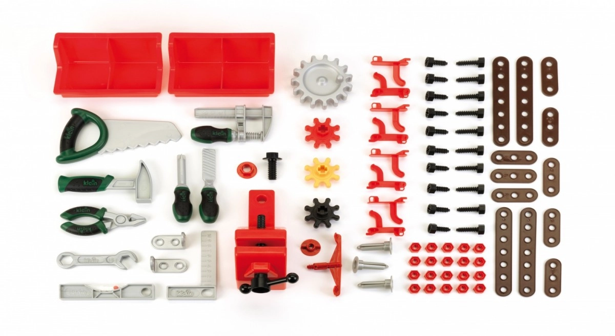 Kompletna oprema uključuje odvijače, ključeve, libelu, kliješta, turpiju, čekić, pilu, kutnik, vijke, matice i konstruktivne letvice. Djeca imaju sve potrebno za prve projekte i učenje kroz igru.