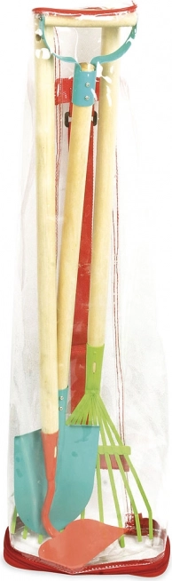 U pakiranju se nalazi sve potrebno: lopata za kopanje i presađivanje, grablje za skupljanje lišća i poravnavanje tla, motika za rahlenje i plijevljenje te zaštitne rukavice s elastičnim rubom za udobno nošenje. Idealno za djecu od 3 godine naviše.