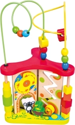 Ovaj višenamjenski drveni aktivnostni labirint brenda Bino osmišljen je da djecu zabavlja i istovremeno razvija. Perlice na metalnim žicama, rotirajući i klizni elementi te ilustrirani motivi životinja potiču znatiželju, koncentraciju i koordinaciju oko–ruka.