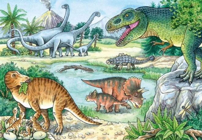 Izvrsna zabava za male ljubitelje dinosaura brenda RAVENSBURGER. Dva seta puzzli, svaki s 24 dijela, donose mnogo zabave i potiču dječju maštu.