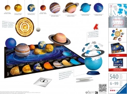 Zahvaljujući vrhunskoj kvaliteti RAVENSBURGERA sastavljanje je glatko, zabavno i poučno. Gotove planete možete objesiti ili izložiti na postolje i kod kuće stvoriti dojmljiv model svemira. U paketu je i obostrani plakat s informacijama (natpisi na stranom jeziku) te slikovni priručnik za lak početak.