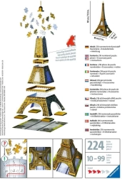 Uživajte u slaganju trodimenzionalnog puzzle modela Eiffelovog tornja. Posebni zakrivljeni i savitljivi dijelovi omogućuju precizno povezivanje bez potrebe za lijepljenjem, što jamči izvrsnu stabilnost ove ikonske građevine. Model je izrađen od čvrste plastike, što jamči njegovu dugotrajnost.