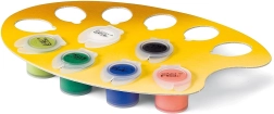 Praktičan set sadrži platno s predloškom, akrilne boje u posudicama, kvalitetan kist, kartonski držač za boje te okvir za završnu prezentaciju.