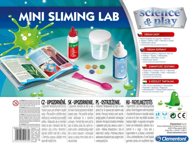 Set Clementoni Science & Play Mala laboratorij za izradu sluzi idealan je za sve male ljubitelje kemije! Uz pomoć ovog seta djeca će otkriti tajne kemijskih reakcija i viskoznih tekućina na zabavan i siguran način.