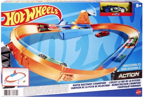 Uz set Rivalstvo prvaka od HOT WHEELS djeca uživaju u utrkama, driftanju i akrobacijama na narančastim stazama sa okidačima i zavojima. Ne nedostaju startna vrata, moćni launcher, srušive zastavice za bodove i 1 metalni autić za odmah krenuti u akciju.