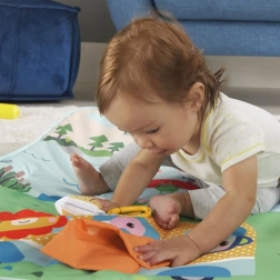 Ova mekana i prostrana igraća podloga s čarobnim outdoor motivom potiče znatiželju i prirodno podržava razvoj djeteta. Zahvaljujući priloženim igračkama, beba će se dugo zabavljati dok jača mišiće vrata i leđa te razvija finu motoriku.