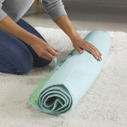 Podlogu jednostavno smotate i osigurate remenima za praktično prenošenje. Održavanje je lako – materijal je periv u perilici rublja.