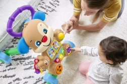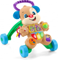 Pokrenite prve korake s guralicom Fisher-Price u obliku razigranog psića. Interaktivna ploča s gumbima, svjetlima i knjižicom uči abecedu, brojeve, boje i oblike, dok stabilna konstrukcija potiče grubu motoriku i samopouzdanje pri hodu. Zahvaljujući tehnologiji Smart Stages sadržaj se prilagođava dobi djeteta za zabavno učenje korak po korak.
