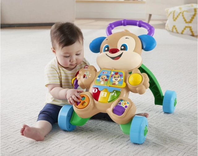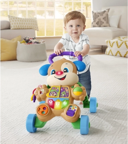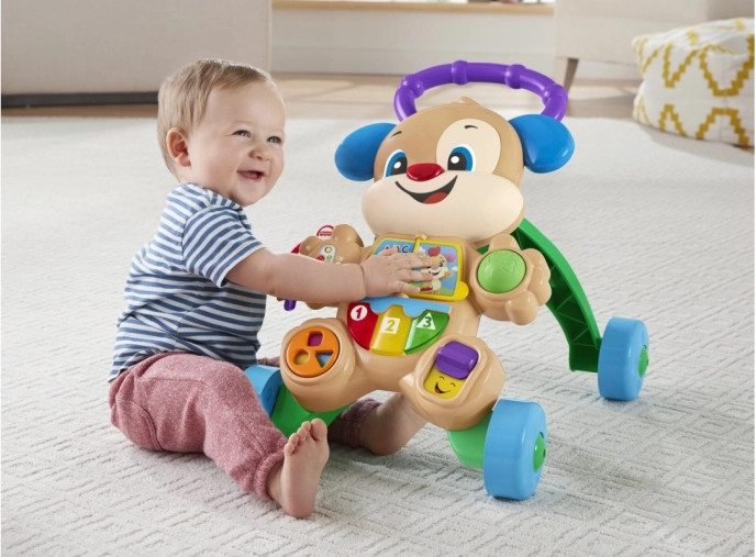 Interaktivna guralica u obliku simpatičnog psića idealan je suputnik od prvog sjedenja do prvih samostalnih koraka. Djeca otkrivaju svjetla, zvukove i pjesmice koje ih motiviraju na kretanje i učenje. Stabilna ručka i široki kotači pomažu s ravnotežom, dok ploča s aktivnostima razvija finu i grubu motoriku.