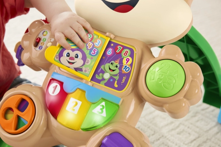 Gumbi, svjetla, zupčanici, klizači i knjižica s psićem razvijaju finu motoriku i uče princip uzroka i posljedice. Glazba i fraze potiču na daljnje aktivnosti.