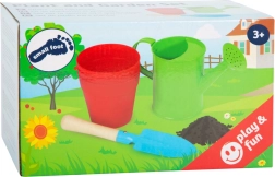 Vrtlarite zajedno s djecom uz ovaj razigrani set marke small foot, koji sadrži kanticu za zalijevanje, metalnu lopaticu s drvenom drškom i 3 višekratne tegle. Idealna veličina za dječje ruke, odvodne rupice na teglama i izdržljivi materijali podupiru prve uspjehe u uzgoju te razvoj fine motorike i odnosa prema prirodi.