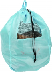Tirkizna torbica s mrežastim prozorčićem omogućuje lako prenošenje i pohranu užeta nakon igre.