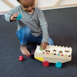 Ovaj drveni vučni aligator s umetaljkom idealna je igračka za male istraživače od 18 mjeseci. Pet čvrstih oblika djeca lako umeću u odgovarajuće otvore, čime razvijaju koordinaciju ruka–oko i logičko razmišljanje. Zahvaljujući praktičnoj uzici za vuču i gumiranim kotačićima, uživat će u mnogo aktivne zabave kod kuće i na putu.