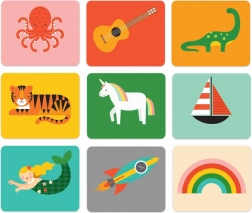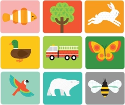 Šarene i jasne slike životinja, predmeta i prijevoznih sredstava olakšavaju pogađanje i mlađim igračima.