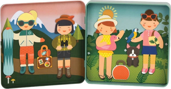 Zabavna magnetska knjižica za džep za male putnike. Zahvaljujući više od 25 magnetima djeca mogu miješati dijelove i stvarati likove, otkrivati dva prizorišta unutra te razvijati maštu i finu motoriku. Praktična limena kutijica čvrsto se zatvara, pa je idealna za putovanja.