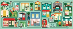 Labirint i slagalica Grad je zabavna igra za djecu od 2 godine koja kombinira slaganje puzzli s interaktivnim traženjem predmeta. Djeca se mogu radovati šarenom gradu punom iznenađenja.