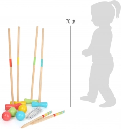 Drveni kroket Small foot Active bezvremenska je igra za djecu i odrasle. Vrata se jednostavno zabodu u travnjak i mogu se rasporediti s većim ili manjim razmacima u različitim formacijama. Tako možete prilagoditi pravila i tempo igre svojim sposobnostima i dobi igrača.