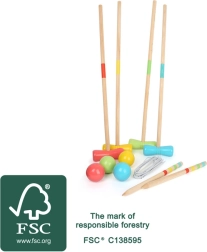 Uživajte u klasičnoj zabavi na otvorenom s kvalitetnim setom kroketa od 100% FSC drva. Varijabilno postavljiva vrata omogućuju podešavanje različitih razina težine, pa će igra zabaviti cijelu obitelj. Kroket potiče motoriku, koordinaciju pokreta i zdrav natjecateljski duh – idealno za vrt ili park.