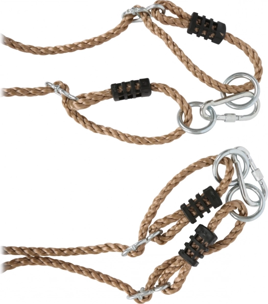 Najlonska užad s metalnim provlakama, prstenovima i sigurnosnim karabinerima osiguravaju brzo, čvrsto i sigurno vješanje.