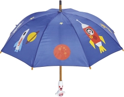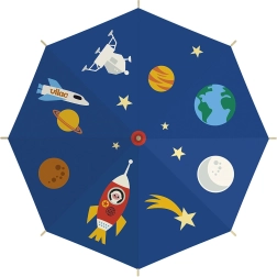 Otkrijte čaroliju kišnih dana s dječjim kišobranom VILAC Kozmonaut. Šareni svemirski tisak s planetima i raketama pretvara put do vrtića ili škole u zabavu, dok robusna konstrukcija pouzdano štiti od kiše. Ergonomična drvena ručka dobro leži u dječjoj ruci i pruža siguran hvat.
