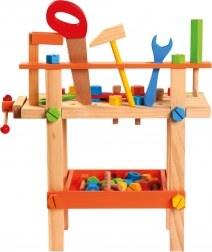 Ovaj dječji radni stol idealan je za male obrtnike koji vole zavrtati, slagati i popravljati. Zahvaljujući čvrstoj konstrukciji, perforiranoj radnoj ploči i praktičnoj stegi, djeca iskušavaju stvarne situacije i usvajaju osnovne vještine dok se igraju.