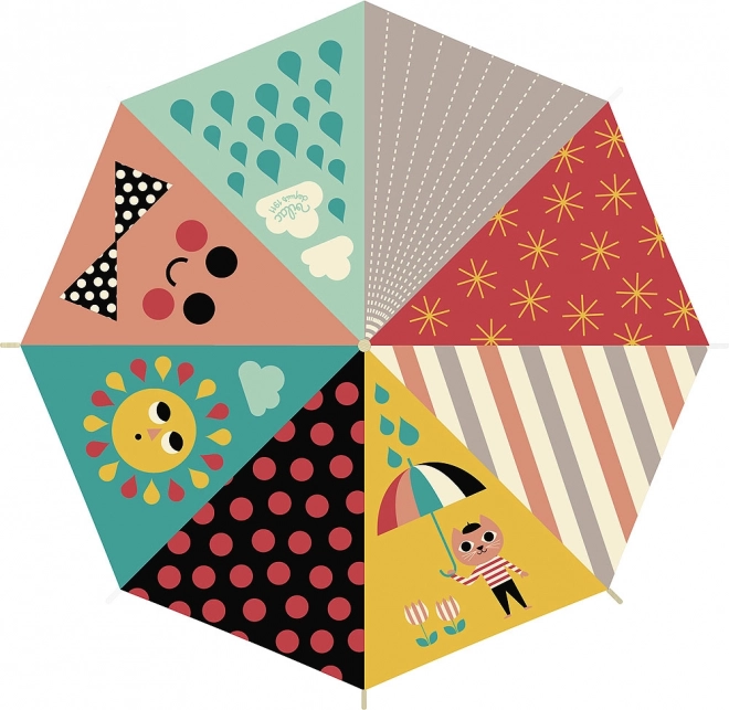 Kišobran je proizveden u Francuskoj od kvalitetnih materijala s naglaskom na sigurnost i udobnost malih korisnika. Ergonomska drvena ručka dobro pristaje i malim dječjim rukama, a glatko otvaranje olakšava samostalnu upotrebu.