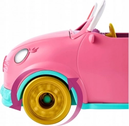 Set Enchantimals Zec Mobil nudi beskrajnu zabavu i avanture s Bree Bunny i njenim zečjim pratiteljem. Ovaj impresivan ružičasti mobil sa zečjim ušima i dekorativnim cvijećem je stilska igračka za svako dijete. Zlaćani kotači daju mobilu izvanredan izgled, dok otvoren prtljažnik omogućava pohranu važnih stvari poput kreme za sunčanje u otvarajućem koferu.