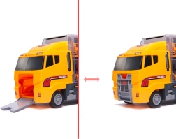 Ovaj 2-u-1 transporter i set za igru spaja zabavu i praktičnost. Tegljač s prozirnim stjenkama prima šest detaljno izrađenih građevinskih vozila i ujedno služi kao kompaktan organizator. Djeca uživaju u realističnoj igri gradilišta zahvaljujući pokretnim dijelovima i pametnoj izvlačnoj rampi na gumb.