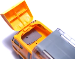 Tegljač ima prozirni poklopac i pretince za svih 6 autića. Djeca imaju strojeve uvijek pri ruci, a set se lako posprema i prenosi.