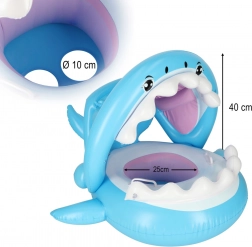 Preslatki napuhujući ponton u obliku morskog psa pretvara svako kupanje u avanturu. Zahvaljujući sjenićem baldahinu, udobnom sjedalu s otvorima za noge i praktičnim ručkama, vaš mali morski putnik uživat će u vodenim radostima sigurno i udobno. Izdržljiv PVC izdrži i sezonu punu zabave. Maksimalna nosivost 23 kg.