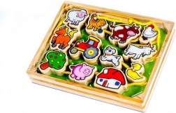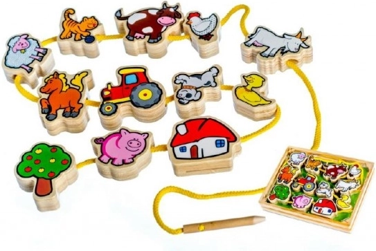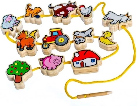 Ova drvena provlačilica idealno je pomagalo za najmlađe. Djeca će uz nju naučiti prepoznavati tradicionalne domaće životinje i njihove mladunce. Igralne aktivnosti povezane s nizanjem potiču pripovijedanje priča i uče djecu ne samo strpljenju, već i prepoznavanju boja.