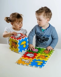Naša pjenasta slagalica ‘Moja prva životinjica’ izvrstan je način da djecu upoznate s raznim životinjama i istovremeno im pomognete razvijati motoričke vještine. Zahvaljujući izvedbi, pogodna je kao mekana prostirka za igru, koju je lako čistiti i zdravstveno je ispravna.