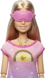 Podržite zdrave rituale spavanja i dnevni odmor s lutkom Barbie Wellness. Jednim pritiskom sunca na ogrlici pokrećete dnevni režim s vježbama disanja, a pritiskom mjeseca aktivirate noćni režim za smirivanje prije spavanja. Lutka je potpuno artikulirana, pa se lako namješta u položaje za istezanje ili meditaciju.
