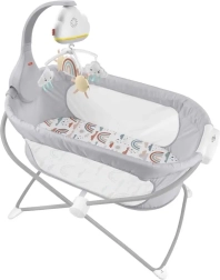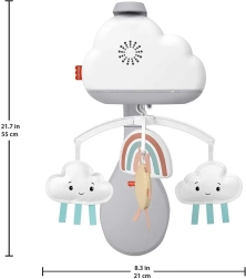 Unesite u dječju sobu Fisher-Price dječji vrtuljak s glazbom i noćnim svjetlom s motivom oblaka i blagim bojama, koji odiše modernim dizajnom i harmonijom. Ovaj vrtuljak ili umirivač savršen je za malu djecu koja trebaju pomoć pri uspavljivanju.