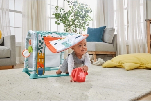 Stvorite bebi siguran, poticajan prostor za svakodnevno istraživanje. Igraća podloga Fisher-Price 3-u-1 Istraživačka kućica lako se prilagođava razvojnoj fazi djeteta: od udobne igre na leđima s igračkama iznad glavice, preko jačanja vratnih i leđnih mišića tijekom vremena na trbuščiću, do zabavnog tunela koji potiče puzanje i prve pokušaje gmizanja.