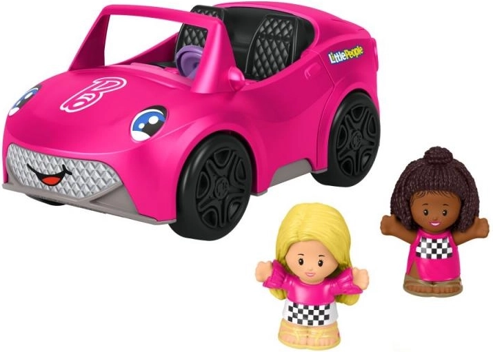 Barbie® kabriolet smanjen je na veličinu igračaka Little People® tvrtke Fisher-Price® i djeci omogućuje maštovitu igru s dvjema figuricama Little People® (uključene u pakiranje). Kada djeca pritisnu jednu od figurica na vozačevom sjedalu, čut će zabavnu glazbu i zvukove. U kabriolet, koji je savršene veličine za male ručice, stanu obje figurice Little People®, a dolazi u odličnim bojama i s Barbie® ukrasima.